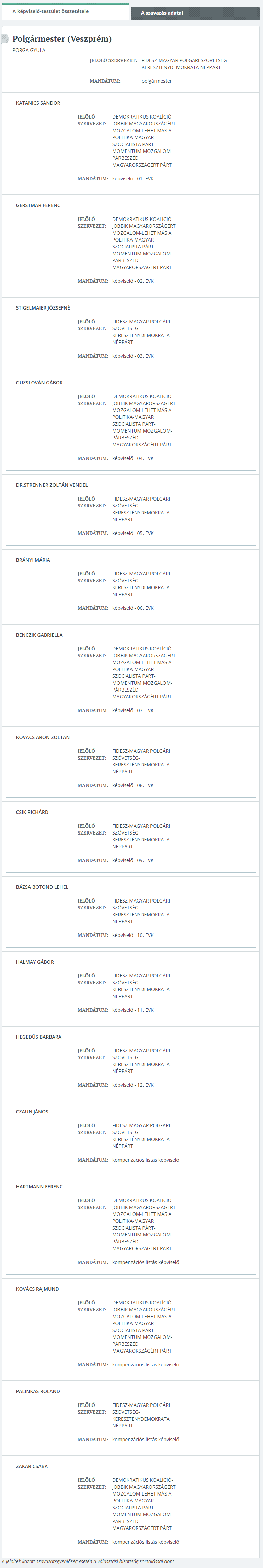 Porga Gyula köszönetét fejezte ki a támogatásért a Fidesz-KDNP eredményváróján vasárnap este. Mint mondta, mind a 12 képviselőjelöltjük ugyanannyit dolgozott, azt a munkát, amit elterveztek, tisztességgel végre is hajtották. Emlékeztetett, bőven 50 százalék feletti támogatást kapott a városlakóktól, ami az elmúlt években végzett munkának köszönhető, illetve "ez a szám erőt ad az előttünk álló nagyon sok kihívással tarkított időszakra." Hozzátette, megvan a korábbi többség. "Két főt veszítettünk, de még mindig kényelmes működést feltételez ez az eredmény." Megjegyezte még, "továbbra sem zárom ki azokat az értelmezhető javaslatokat, amik az ellenzék oldaláról érkeznek."