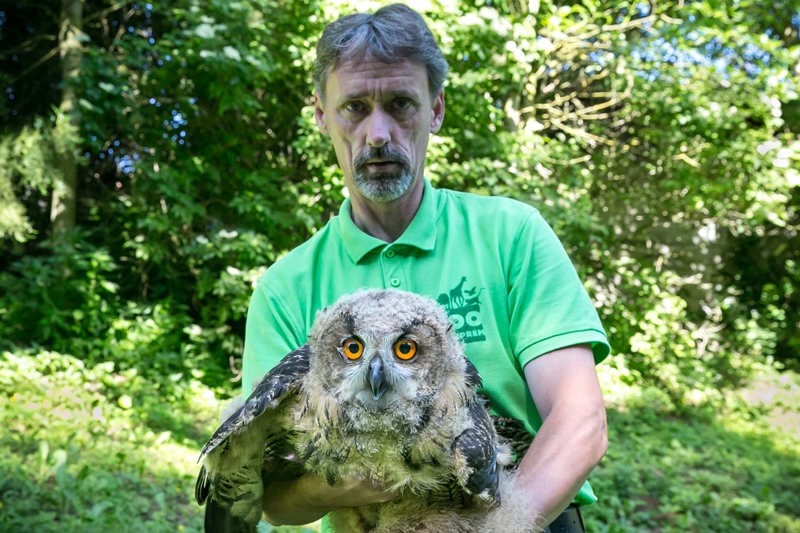 A Veszprémi Állatkert uhu fiókáját a Fejes-völgyi bagolyröpdében tekinthetik meg látogatók.
