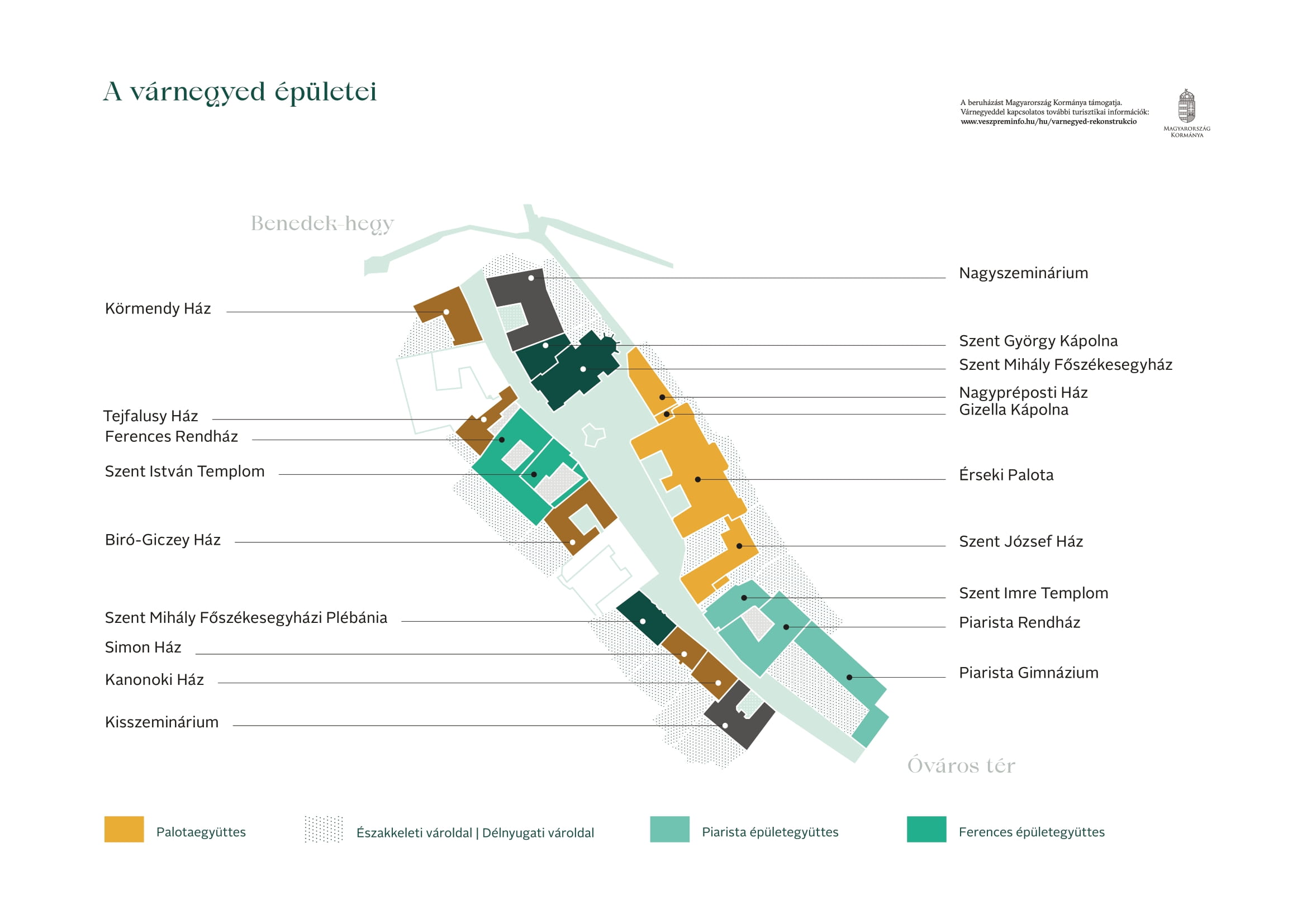 A veszprémi várnegyed beruházás keretében 18 épület, 35 ezer négyzetméter épített és mintegy 10 ezer négyzetméter szabad terület újul meg.