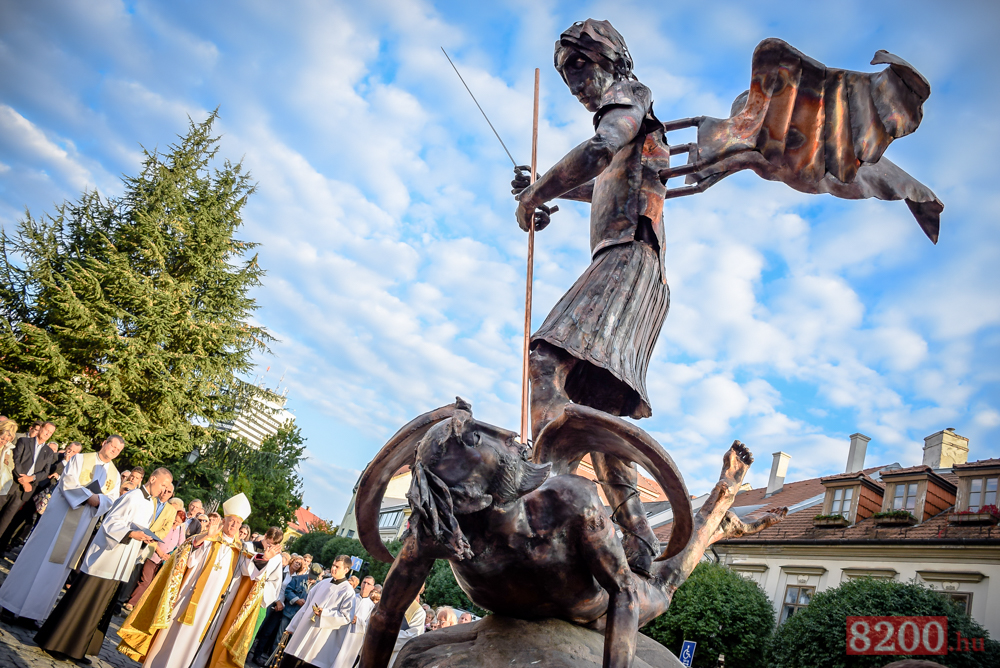 A Szent Mihály Bazilika, a város és az érseki tartomány védőszentjének, Szent Mihály arkangyal szobrát avatták fel péntek délután az Óváros téren.
